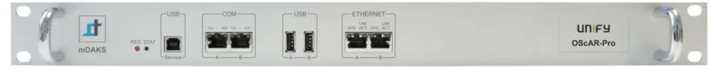 Introduction du serveur d’alarme compact DAKS-Eco (Digital Alarm and Communication Server) et de composants satellites pour I/O de contact, série et NF. - OScAR-Eco émerge comme la version économique d’OpenScape Alarm Response, développée et produite par tetronik pour Unify (rebranding de Siemens Enterprise Communications en 2013). Basé sur les plateformes hardware OScAR-100 (desktop) et OScAR-200 (rack 19″/1U), il supporte 4–30 canaux VoIP/ISDN, interfaces ESPA-X et sérielles.
